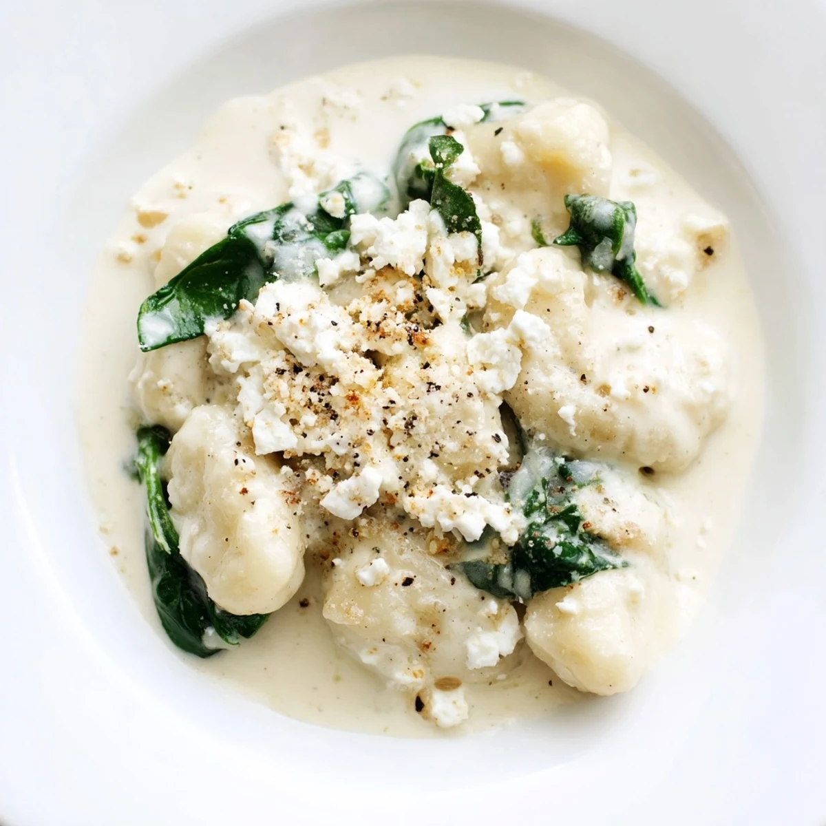 Indulge in tender potato gnocchi swimming through a luscious cream-based sauce, where vibrant spinach leaves meet the salty tang of crumbled feta. This satisfying vegetarian main comes together in just 25 minutes, making it perfect for busy weeknights when you crave something comforting yet elegant.
